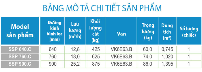 - Thành phần lọc: Silex hoặc silex-hydroanthracite