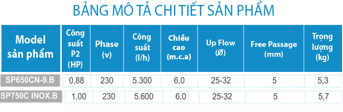 - Bơm chìm technopolymer, trục làm từ thép không gỉ AISI 304