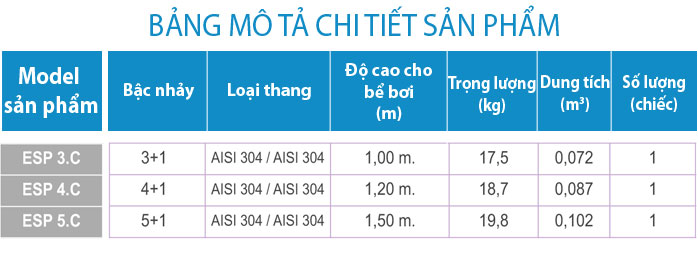 Tên sản phẩm: Thang bể bơi dân dụng - ESP