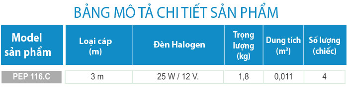 Tên sản phẩm: Đèn Led nhiều màu cho bể bơi - PEL 116