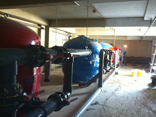 Hình Ảnh Công ty Tuấn Hùng khẩn chương triển khai lắp đặt phòng máy Bể bơi lớn với DT 2.500m3, thiết bị nhập khẩu 100% của thương hiệu Kristol Tây Ban Nha.