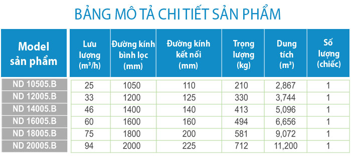 - Công suất lọc: 30 m3/h/m2