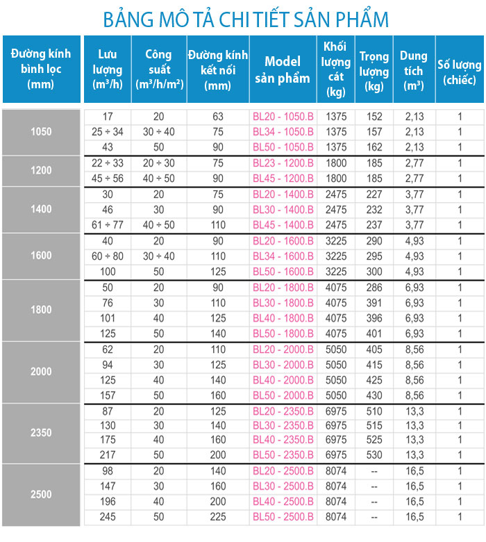 - Đầu ra cát: PVC Ø 75mm với 1'' đầu cắm.