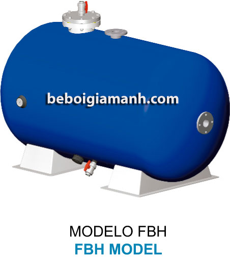 - Bình lọc công nghiệp FBH (2,5kg), sản xuất bởi hệ thống sử dụng polyester gia cố bằng nhựa và sợi thủy tinh ngâm tẩm, được đặt trên đế trắng.