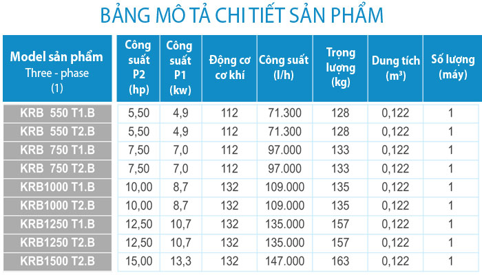 - Model KRB: vỏ bơm, cánh quạt và bộ lọc trước bằng kẽm đồng.