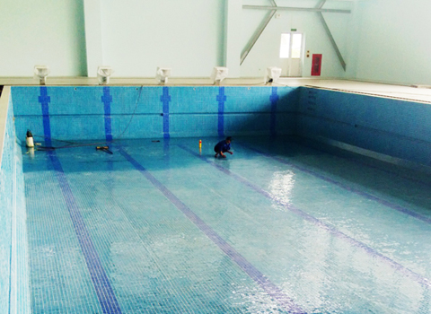 Hình Ảnh Công ty đang triển khai ốp bể hoàn thiện bằng gạch Mosamic